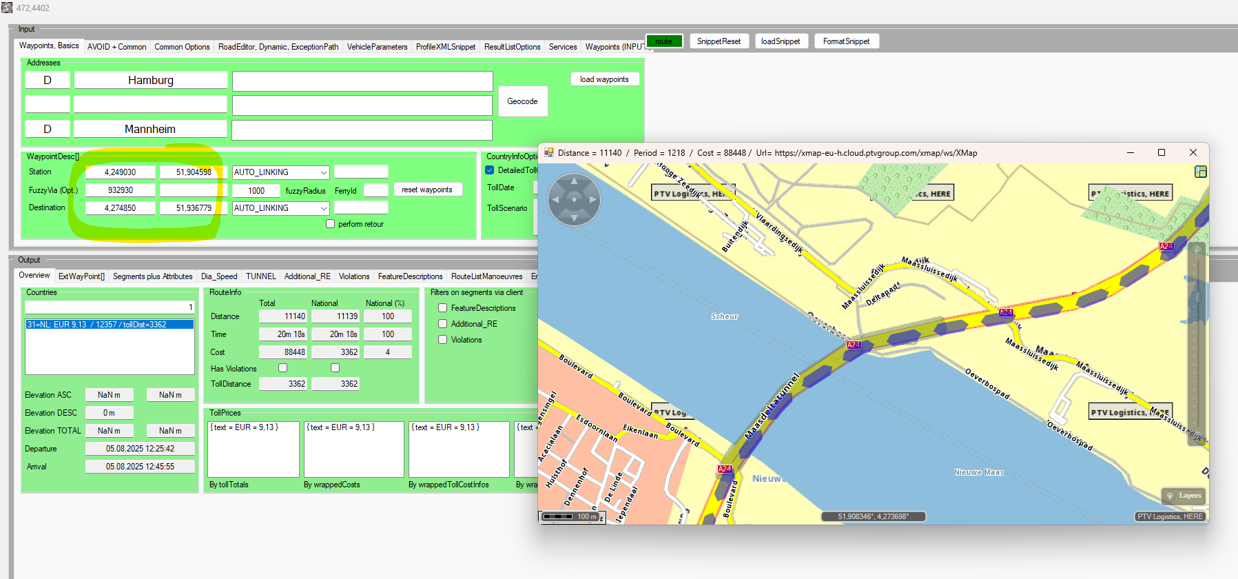 Im using PTV xServer 1.30 with map TLNplanner Europe City 2025_1H.geo.