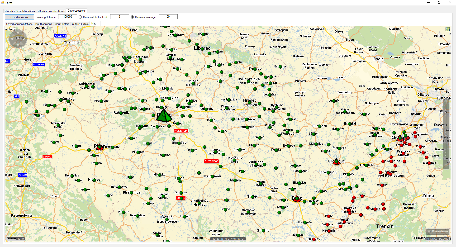 The scope of the samples is the Czech Republic: I defined 5 potential subsidaries (cost==1) and about 270 customers