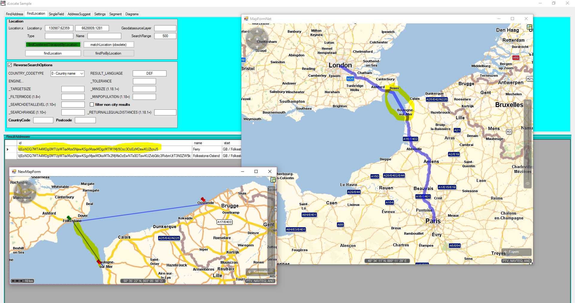 - xLocate provides the ID of the connection (left map and grid). xRoute is then able to consider it as a Waypoint (right map).
