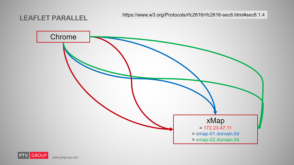From what I heard about leaflet is that it (more precise: the browser) limits the number of parallel connections to further URLs to a defined threshold value. Therefore a mapping framweork such as LEAFLET can only consume a number of tiles at the same time in parallel. In times of "full display mapping" a frontend requires 50-100 tiles and I'd like to speed up the rendering process.